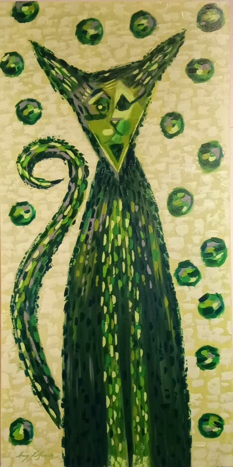 - “Gato” by Steve D. Stones is one of several cat-inspired art pieces that will be available at the Love Cats Art Auction, set for March 13-14, 2026, at the Local Artisan Collective.