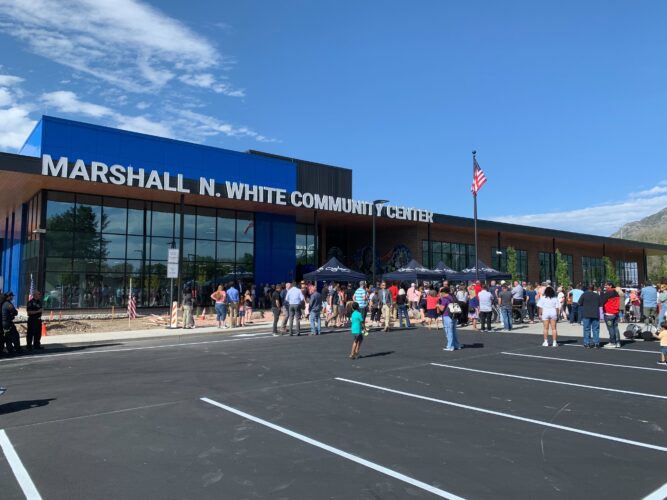 A crowd gathers in front of the Marshall N. White Community Center for its ribbon-cutting ceremony Thursday, May 22, 2025.OGDEN — The newly rebuilt Marshall N. White Community Center is nearing one year old and has naturally accumulated several firsts over the past year.