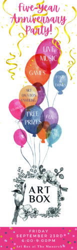 Art Box is celebrating and saying thank you to their customers with an anniversary party on September 23 from 6-9 p.m., featuring live music by Eden’s Yellow Rose, games and prizes, food and beverages, and discounts in the store.