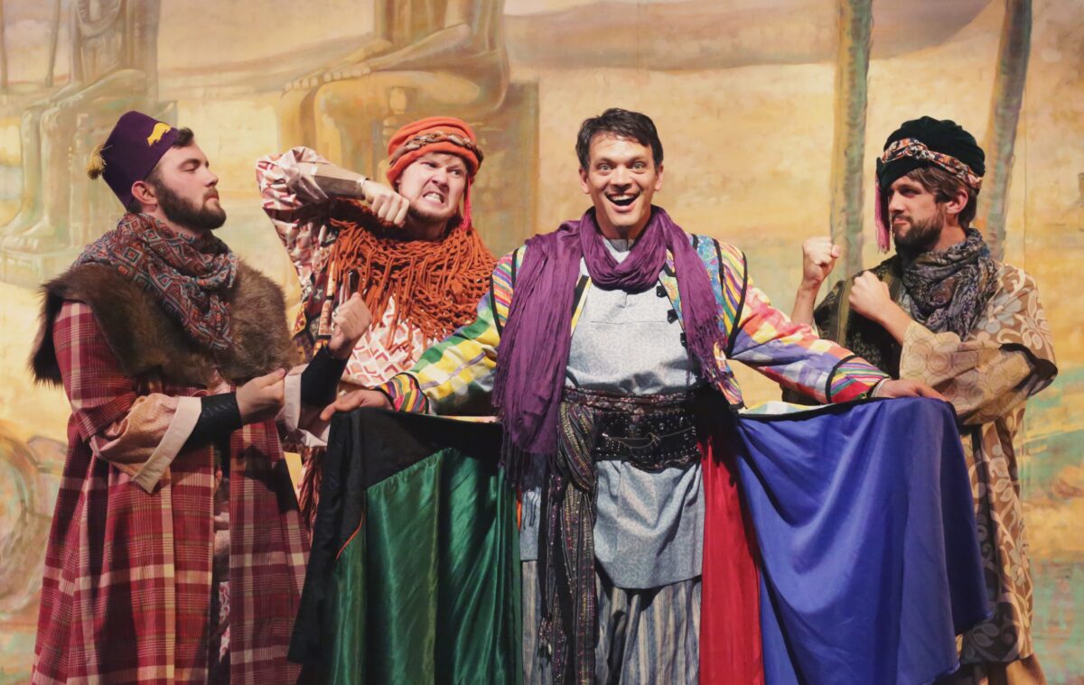 Patriarch Jacob lived happily with his dozen sons, but his favoritism for bright Joseph, symbolized by the gift of a spectacular multicolored coat, makes his brothers so jealous they end up selling him as a slave and staging his death. He rises in the service of wealthy Potiphar, though his adulterous wife is falsely accused and incarcerated. His gift of dream telling, however, wins him Pharoah’s favor, in charge of planning for the seven years of penury after seven good ones he prophesied. When his brothers come to beg for food, it’s time for reckoning and nobility.