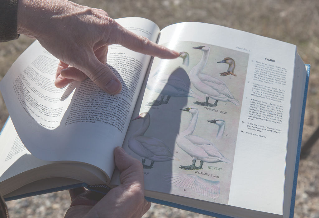 “If you see a trumpeter and a tundra side by side, there’s a big difference,” Browers says. At a distance, however, it may be difficult to tell them apart.