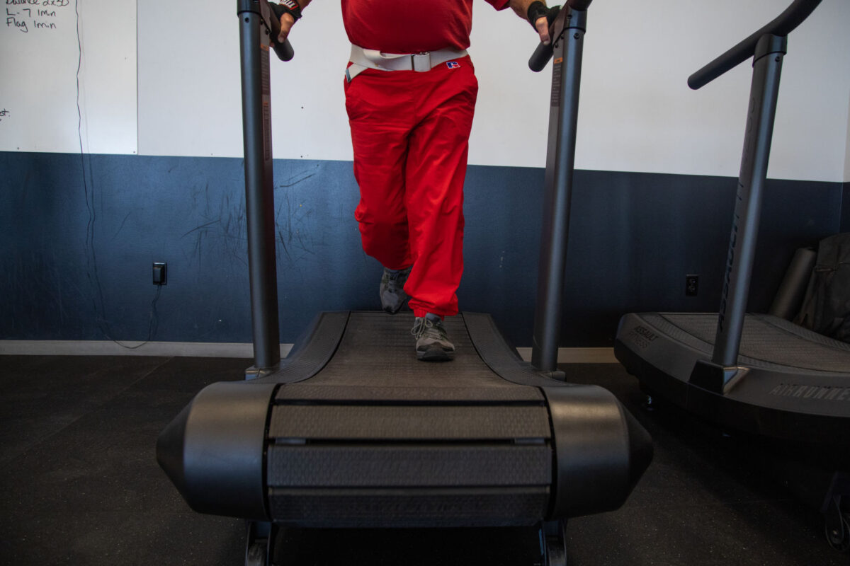 Dick Van Allen uses a treadmill in the Rock Steady Boxing program on Wednesday, Dec. 4, 2019, in Washington Terrace. The boxing program helps Van Allen and others with Parkinson's disease regain muscle mobility and function and treat other symptoms of the disease.