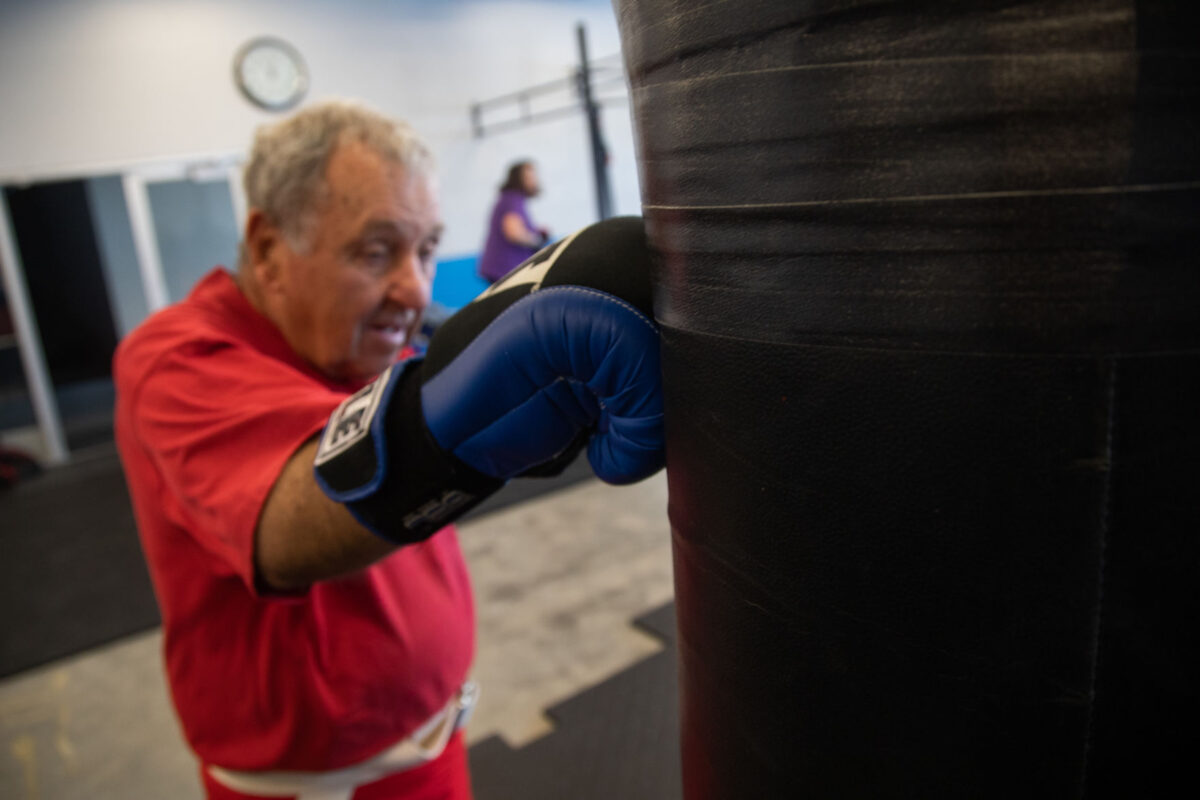 Dick Van Allen punches a bag in the Rock Steady Boxing program on Wednesday, Dec. 4, 2019, in Washington Terrace. The boxing program helps Van Allen and others with Parkinson’s disease regain muscle mobility and function and treat other symptoms of the disease.
