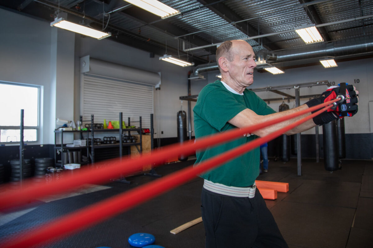 Larry Holdaway does an exercise in the Rock Steady Boxing program on Wednesday, Dec. 4, 2019, in Washington Terrace. The boxing program helps Holdaway and others with Parkinson's disease regain muscle mobility and function and treat other symptoms of the disease.