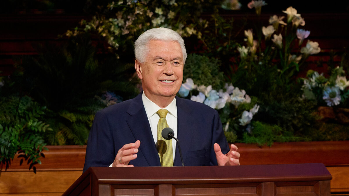 President Dieter F. Uchtdorf, who is also acting president of the Quorum of the Twelve Apostles, addresses the Sunday morning session of the 196th Annual General Conference of the The Church of Jesus Christ of Latter-day Saints on Sunday, April 5, 2026.