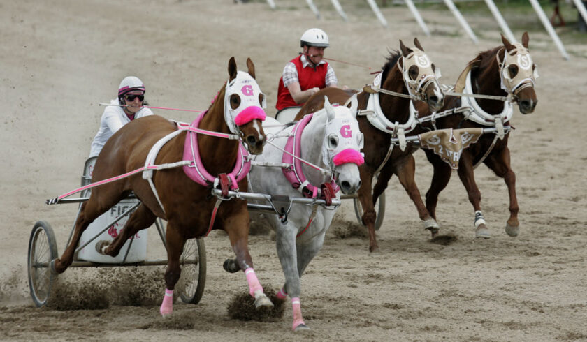 This file photo shows past competitors of the Cutter & Chariot Racing World Championships at the Weber County Fairgrounds in Ogden.
