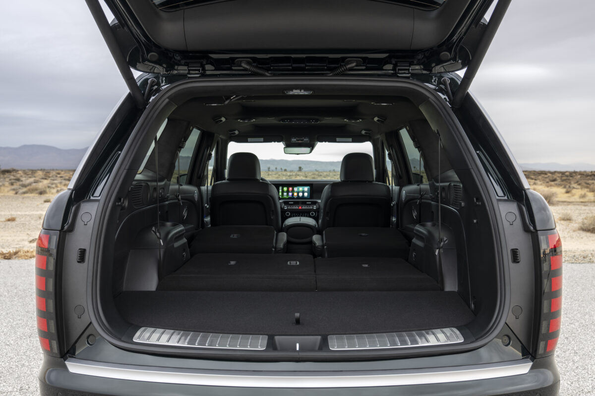 - Versatility is a hallmark of the Palisade. With the push of a button, the power-folding third row drops flat to create a massive cargo area, perfect for hauling groceries, work gear, or luggage for a southern Utah getaway.