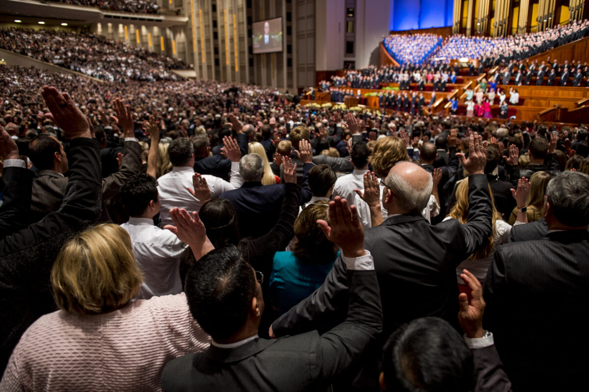 The announcement came as part of a solemn assembly, where members of the church were asked to sustain — raising their hands to show their support or opposition — to the church’s leaders.