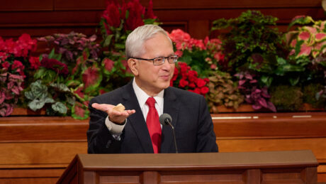 “In my youth, I experienced the joy of coming closer to the Savior — and of His coming closer to me — through simple acts of obedience to the commandments,” he said. “When I was young, the sacrament was offered during an evening meeting. I can still remember one specific night, more than 75 years ago, when it was dark and cold outside. I remember a feeling of light and warmth as I realized that I had kept the commandment to gather with the Saints to partake of the sacrament, covenanting with our Heavenly Father to always remember His Son and keep His commandments.