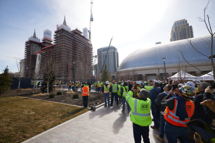 SALT LAKE CITY — More than 800 construction workers gathered Tuesday to celebrate the last reinforcing steel pyramid on top of the Salt Lake Temple of The Church of Jesus Christ of Latter-day Saints.