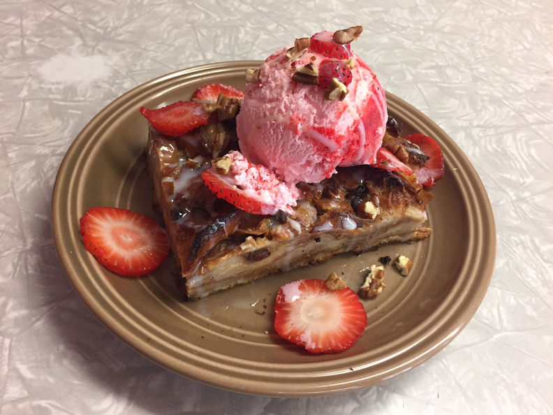 One of the biggest sensations among diners is the bread pudding topped with ice cream and strawberries. The dish is a variation of a traditional Mexican dish served after Lent during Holy Week called capirotada.