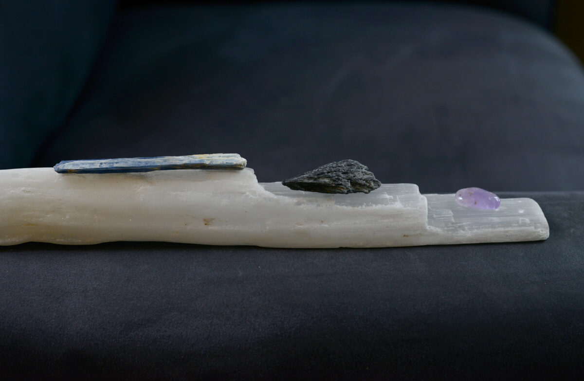 The atmosphere is prepared by dimming the lights and playing soft music or sounds of nature. Hyde likes light a fire or candles, using a diffuser for the air, running an indoor water feature and displaying beautiful rocks or pieces of the earth as part of her décor.