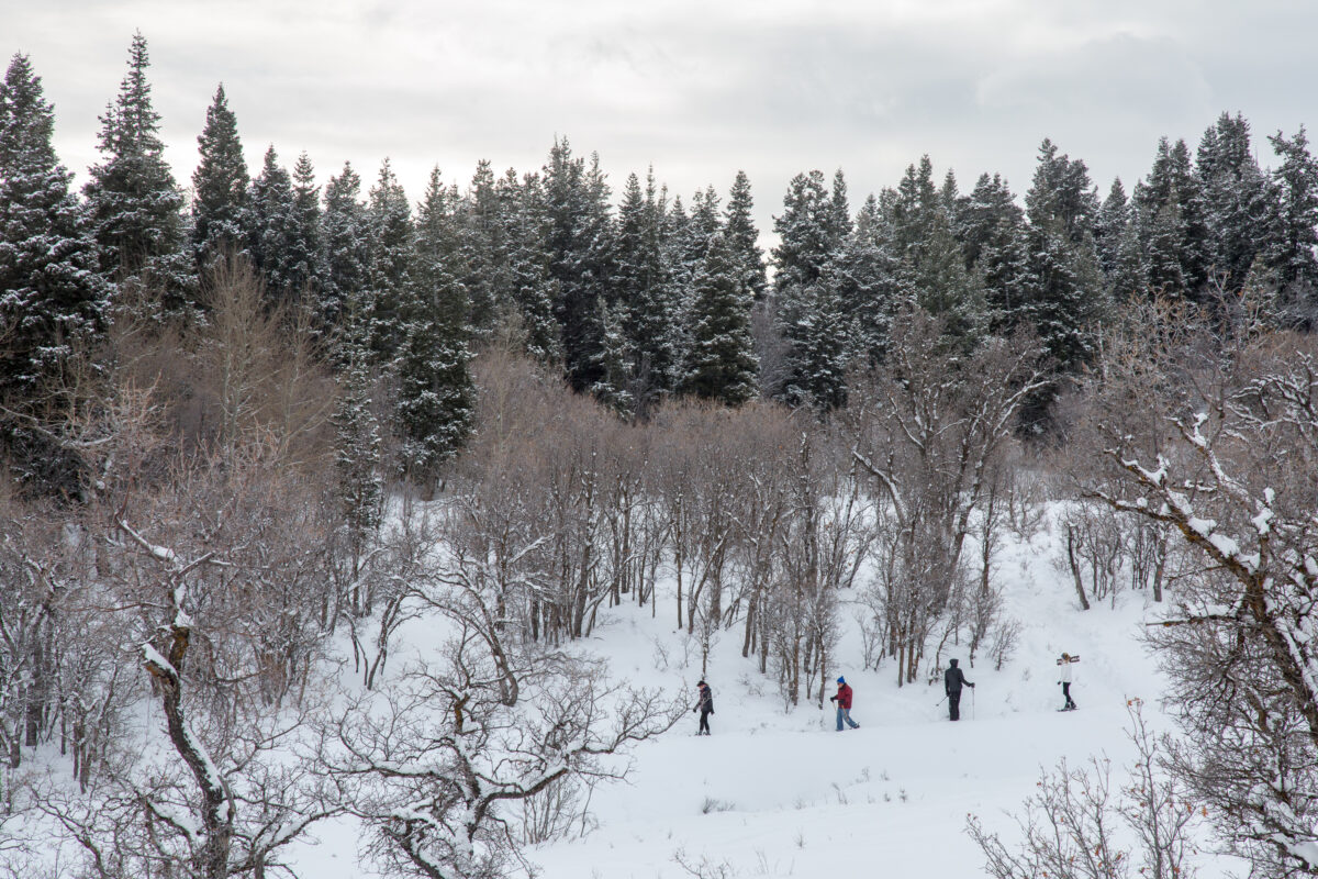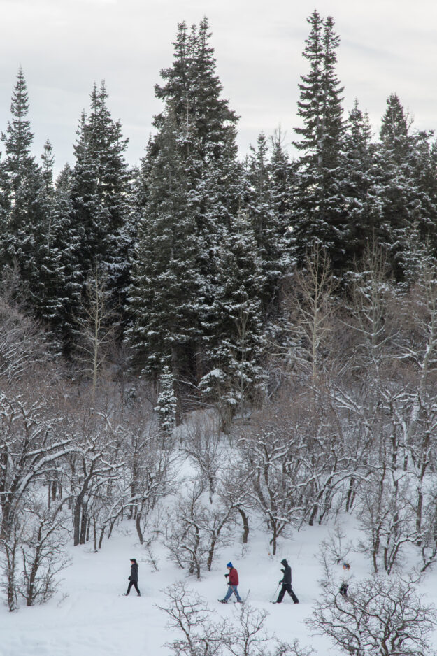 There’s no shortage of places for beginners to go snowshoeing in Northern Utah. Brown recommends golf courses, where allowed, because you can get some nice rolling terrain. Local parks are another good option.