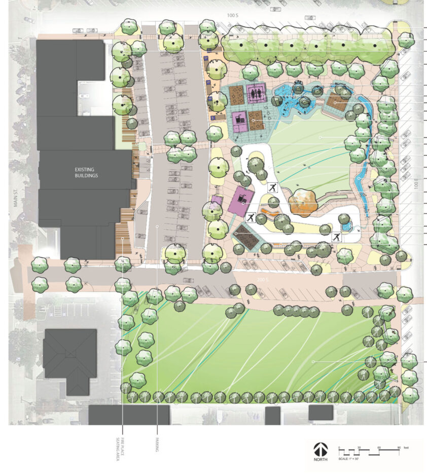 The town square is located off the southwest corner of 100 South and 100 East, just east of Main Street and Bountiful’s main commercial district. The old Stoker School building, constructed in 1904, sat on the property and it was torn down in 2017, to the chagrin of some, to make way for the new development. By and large, though, the project has the support of the community. “This will be a huge attraction, already is,” Lewis said.