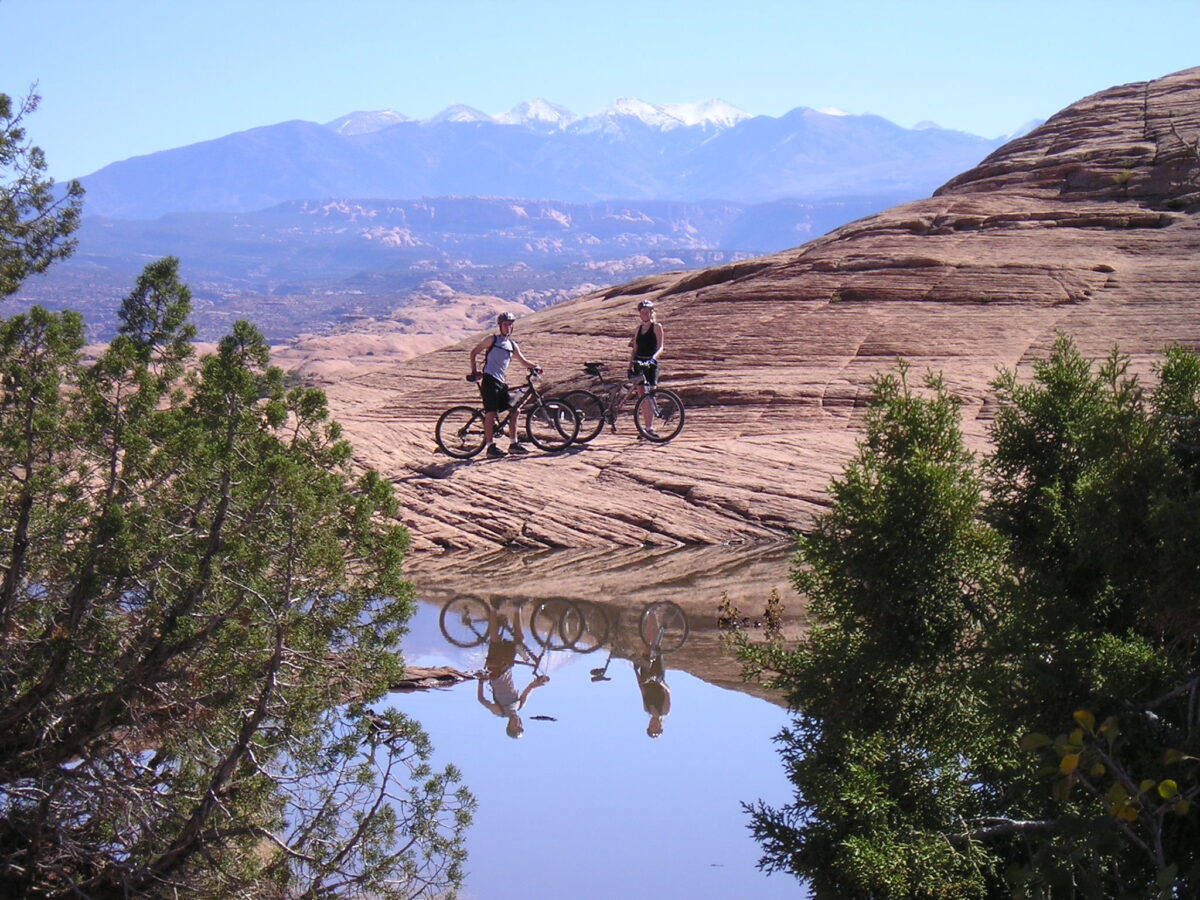 - Deanna Devey, left, and Jared Lloyd ride the Slickrock Trail near Moab in 2006.