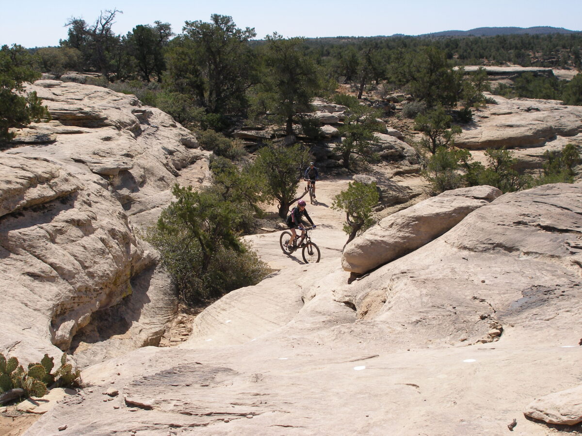- Intermediate: “Wire Mesa would probably be a good choice because it’s a loop of about 8 miles. Half of it is has some rock challenges, and then the other half is just single track cruising. It’s pretty easily doable. There are a couple of areas where an intermediate or an advanced beginner might get off and walk a short section, but a reasonable intermediate writer could pretty much do the whole thing without too much terror or risk of getting hurt.”