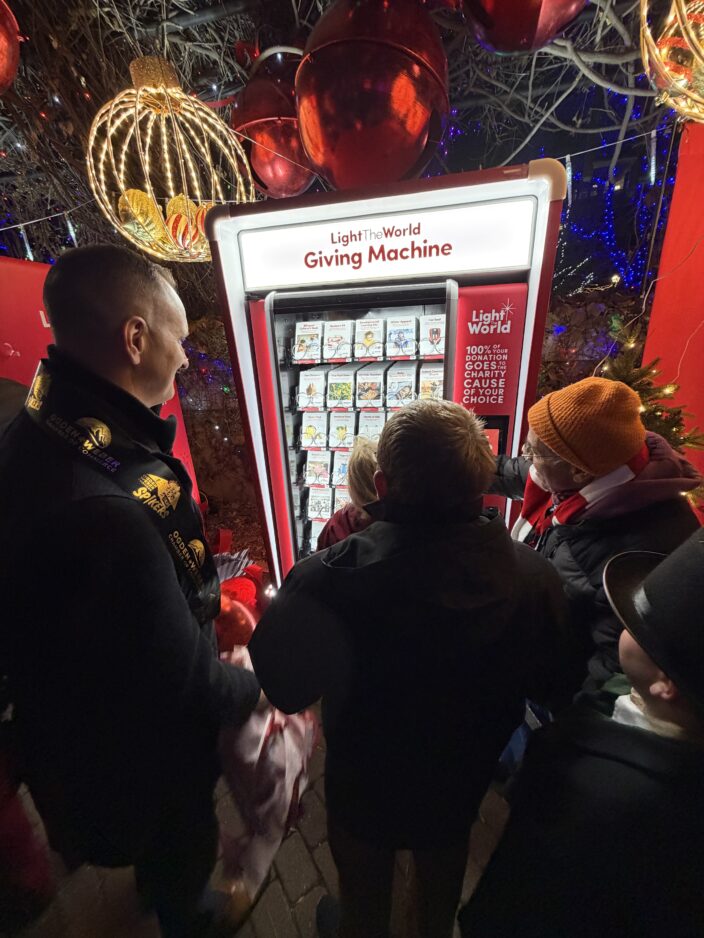 - Spectators look at the Light the World Giving Machine at the Christmas Village in Ogden on Saturday, Nov. 29, 2025.