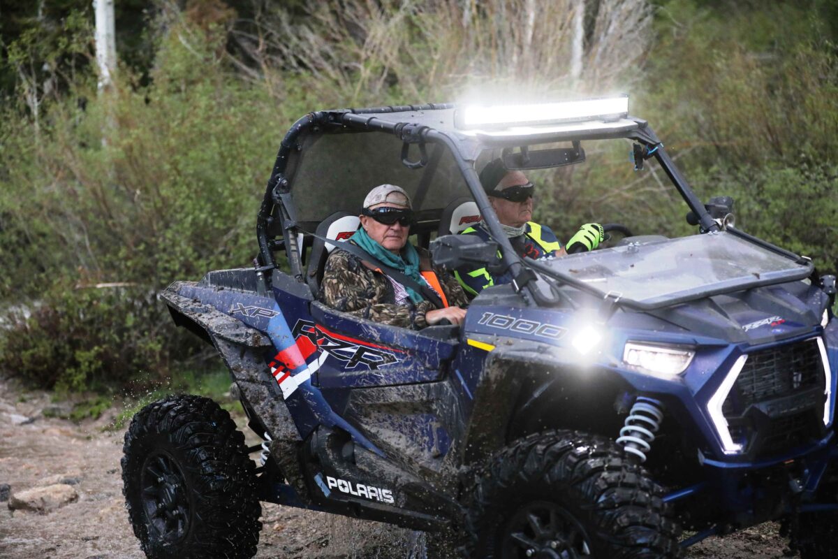 When the fire dies down and the laughter trails off, it is time to come down off the mountain. The machines are fired up and lit with light bars, rock lights, and whip lights for the ride into town. What a show it is with 60 machines lighting up the night in a long line coming down the canyon road.