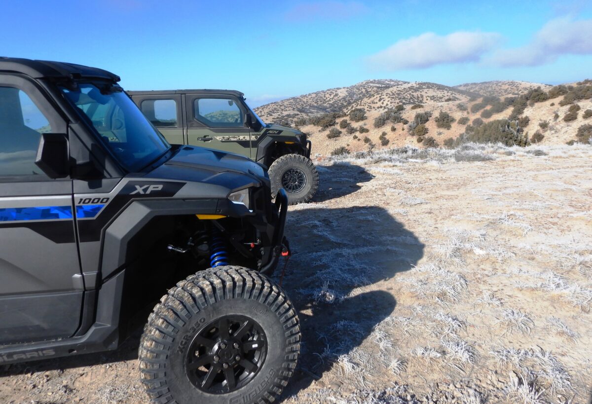 - Two Polaris Xpeditions starting on a frosty ride in the Grassy Mountain.