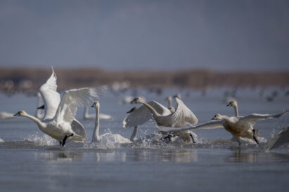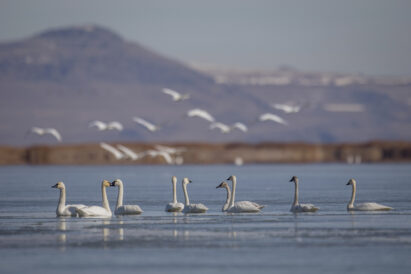 Two types of swans migrate through Utah during different times of the year: tundra and trumpeter swans. Both swan species stop in Utah’s wetlands for some much-needed rest and refueling during their migration north in the spring.