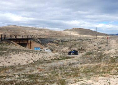 - Going under I-80 on our return to Delle after our trip around Cedar Mountain.