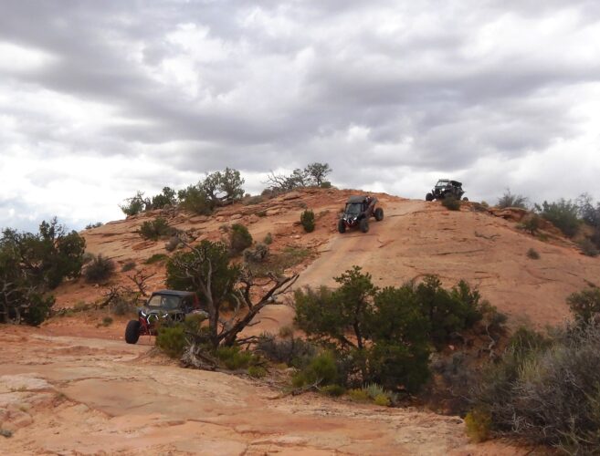 Of all the trails I rode on the 2024 San Juan Safari, the Hook and Ladder Trail was my favorite. When Maury Bergman, one of the Safari organizers, suggested the trail, he said, “You will be amazed at the grip your tires will have on the slick rock.”