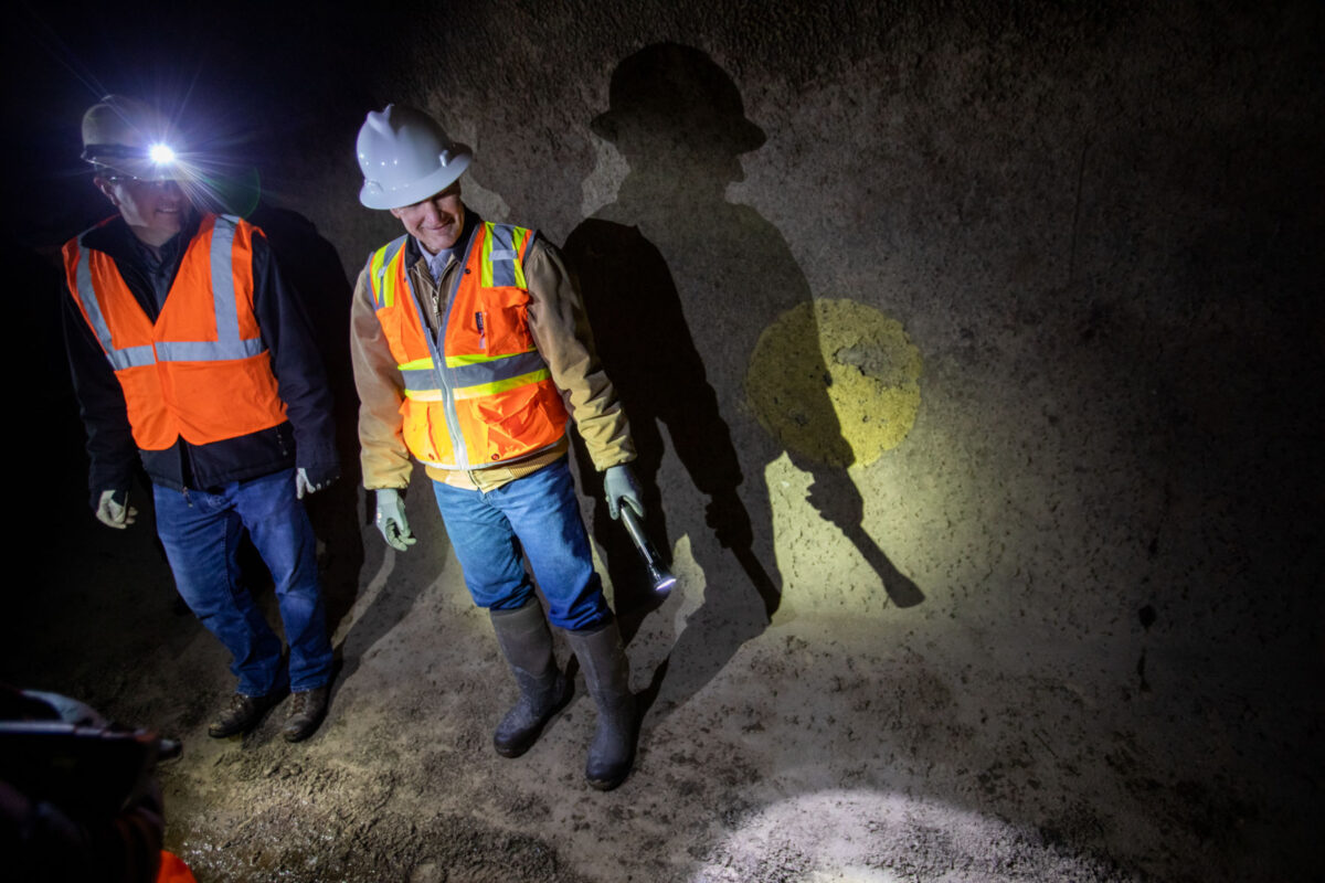 Daren Hess, left, and Chris Hogge of the Weber Basin Water Conservancy District stand in a tunnel that has been shut down for maintenance this week on Wednesday, Feb. 26, 2020, in Morgan County. The 3.3 mile long aqueduct runs through the mountains from Morgan to Davis County and supplies water to the Wasatch Front. The tunnel has not been shut down in a decade.