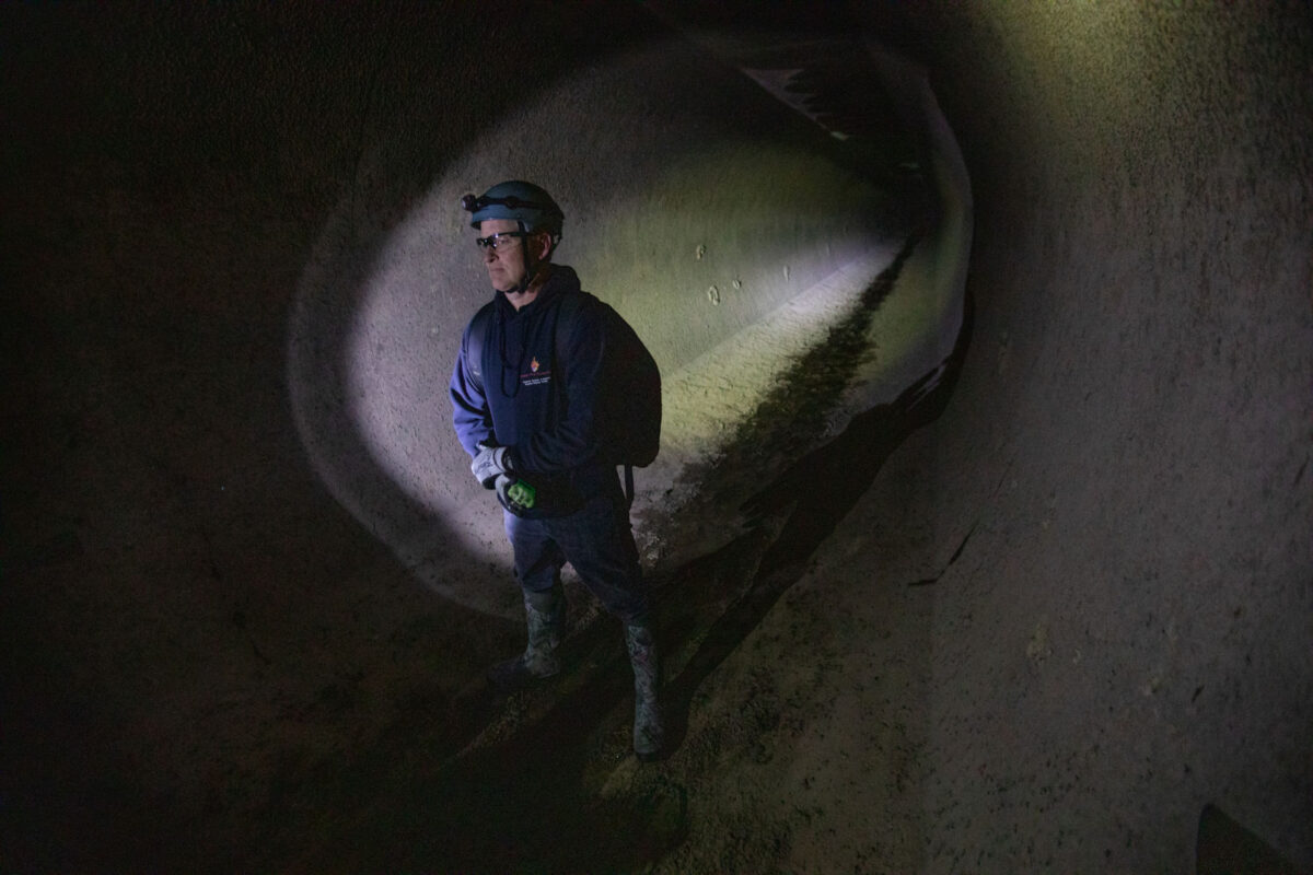 Chris Hogge of the Weber Basin Water Conservancy District stands in a tunnel that has been shut down for maintenance this week on Wednesday, Feb. 26, 2020, in Morgan County. The 3.3 mile long aqueduct runs through the mountains from Morgan to Davis County and supplies water to the Wasatch Front. The tunnel has not been shut down in a decade.