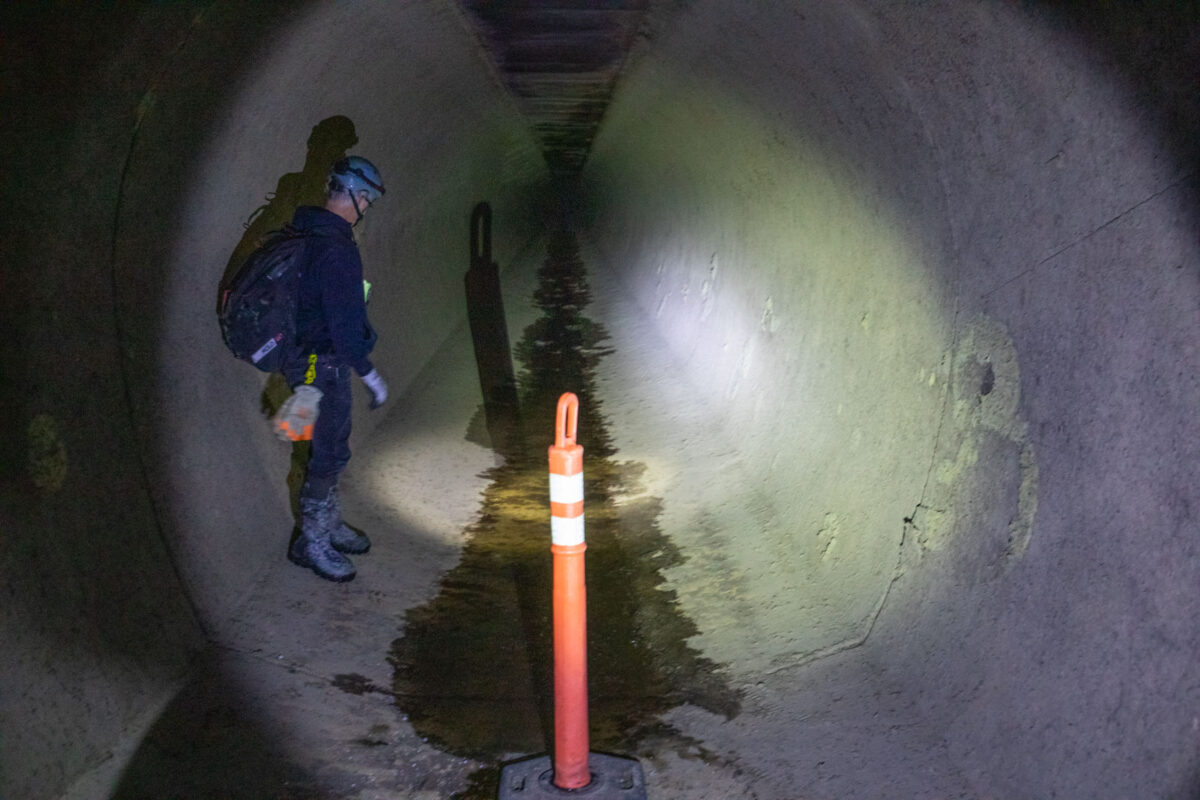 Smokin' Fire Productions rescue team member John Freeman stands in a tunnel that has been shutdown by the Weber Basin Water Conservancy District for maintenance this week on Wednesday, Feb. 26, 2020, in Morgan County. The 3.3 mile long aqueduct runs through the mountains from Morgan to Davis County and supplies water to the Wasatch Front. The tunnel has not been shut down in a decade.