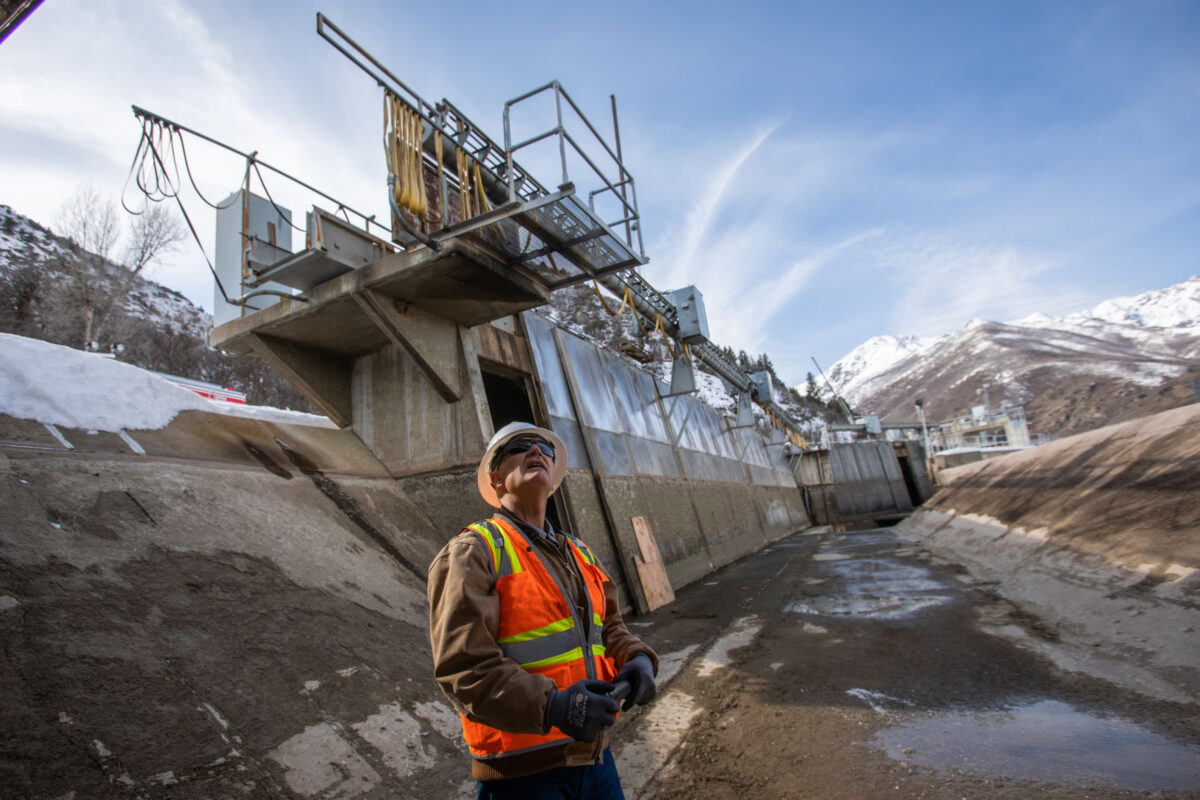On Wednesday afternoon, staff were repairing cracks along the empty canal that usually carries water from the Weber River to the tunnel’s entrance on the mountain’s east side.
