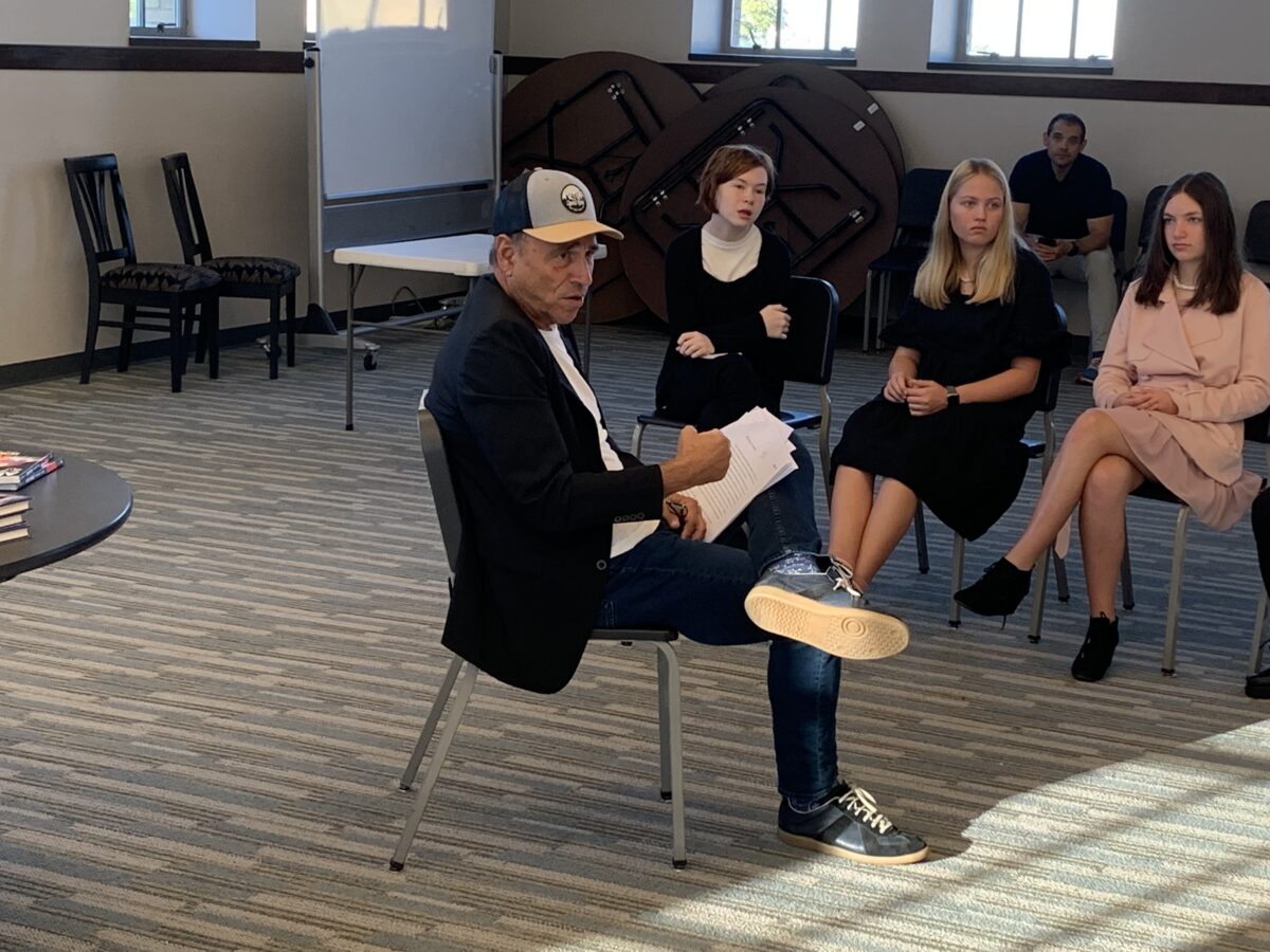 As part of the Ogden School Foundation Fall Author Event, novelist Anthony Horowitz visits with the foundation's essay winners at Ogden High School on Friday, Oct. 6, 2023.
