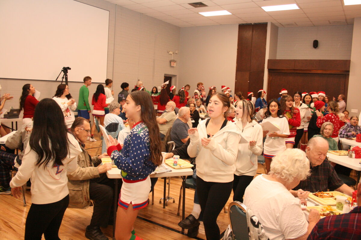 Ben Lomond High School students and residents of Three Link Tower and Fellowship Manor alike celebrate another successful holiday singalong at Golden Hours Senior Recreation Center on Friday, Dec. 12, 2025.