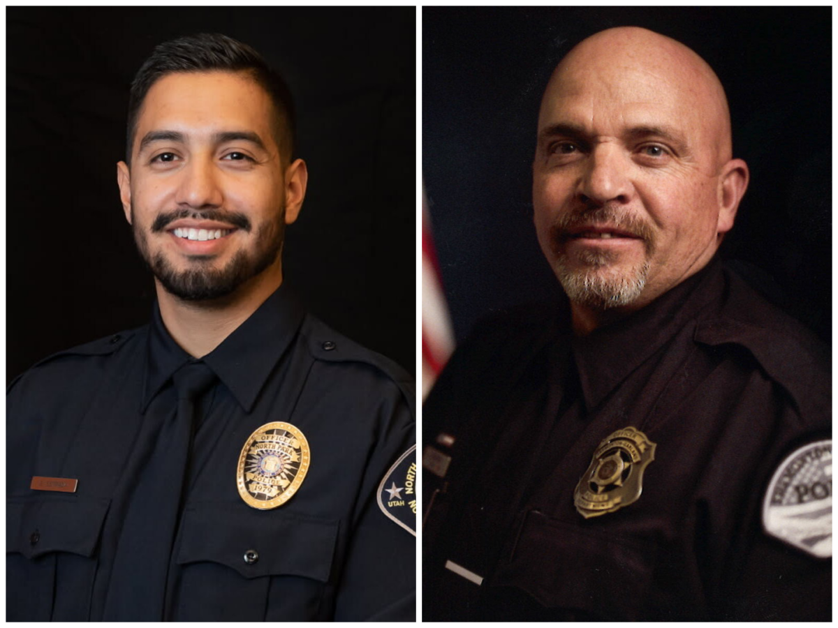 - This combination photo shows Officer Eric Estrada, left, and Sgt. Lee Sorensen, right, of the Tremonton-Garland Police Department. The two men were shot and killed while responding to a domestic violence call in Tremonton on Sunday, Aug. 17, 2025.