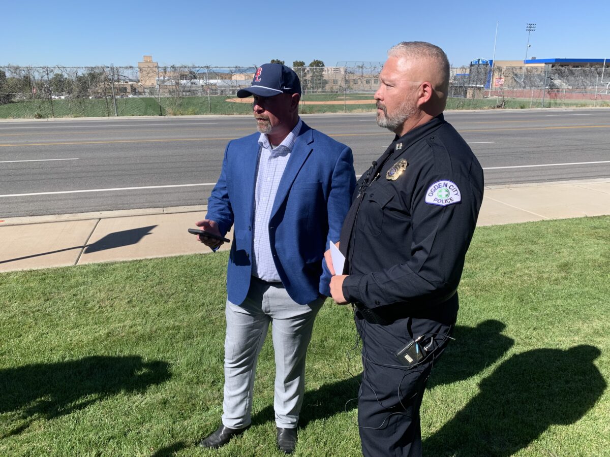 - Ogden School District Superintendent Luke Rasmussen, left, and Capt. Tim Scott of the Ogden City Police Department, right, brief the press near Ben Lomond High School following a bomb threat against the school on Thursday, Oct. 2, 2025.