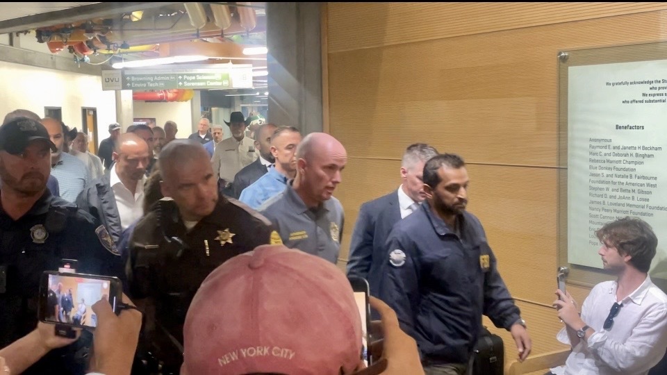 - Utah Governor Spencer Cox and FBI Director Kash Patel, left, walk with a group of local and national law enforcement personnel into a press conference at Utah Valley University on Thursday, Sept. 11, 2025.