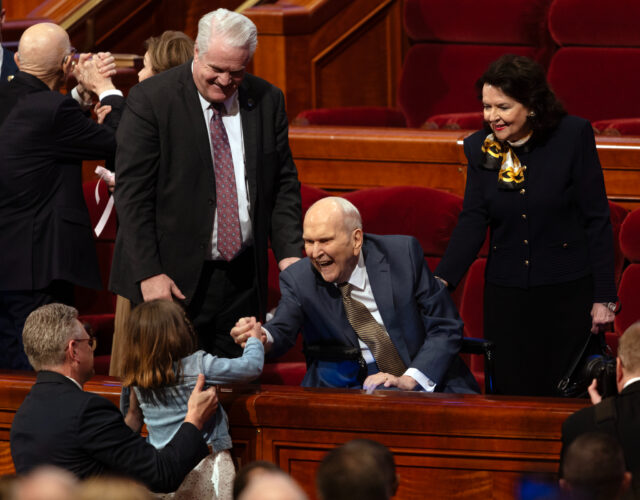 Russell M. Nelson, president of The Church of Jesus Christ of Latter-day Saints, shakes the hand of a little girl at the conclusion of the afternoon session of general conference at the Conference Center in Salt Lake City on Sunday, April 6, 2025.Former president of The Church of Jesus Christ of Latter-day Saints Russell M. Nelson oversaw many changes during his seven-year tenure as prophet, including shortening Sunday church meetings to two hours, replacing home teaching with ministering and placing an emphasis on the church’s official title.