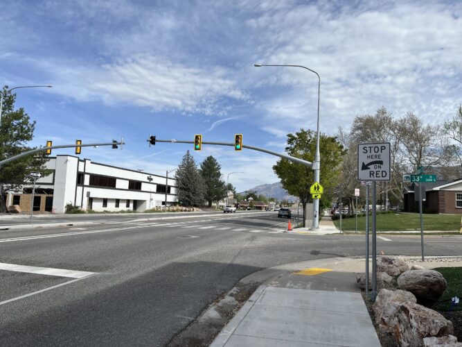 The intersection of Harrison Boulevard and 33rd Street in Ogden, where a new signal was installed to protect pedestrians, on Tuesday, April 21, 2026.OGDEN — The Ogden Police Department announced Monday a new traffic signal at the intersection of Harrison Boulevard and 33rd Street.