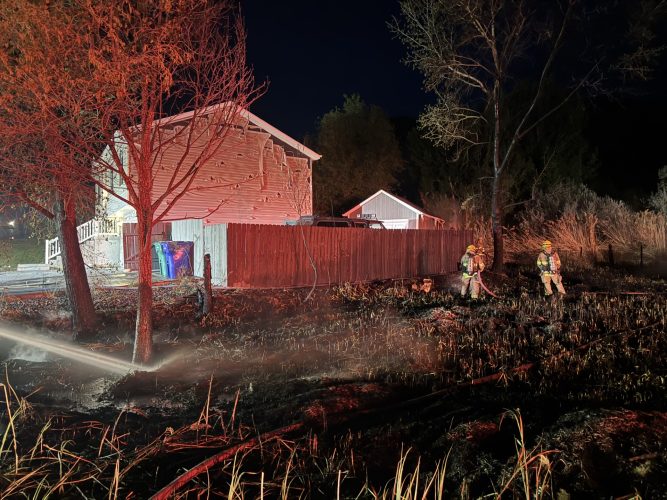 “While en route, officers observed heavy smoke and flames visible from several blocks away. Upon arrival, they located an active fire involving a field, a detached shed, and the south side of a nearby residence,” the release said. “Officers immediately checked the home for occupants and assisted with evacuations in the surrounding area, including notifying a neighboring assisted living facility as a precaution due to the fire’s rapid spread.
