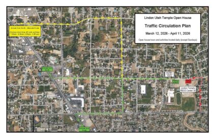 Lindon City announced Wednesday a traffic circulation plan for the area surrounding the temple during the open house, which runs from March 12 to April 11, Monday through Saturday from 9 a.m. to 8 p.m., excluding April 4.