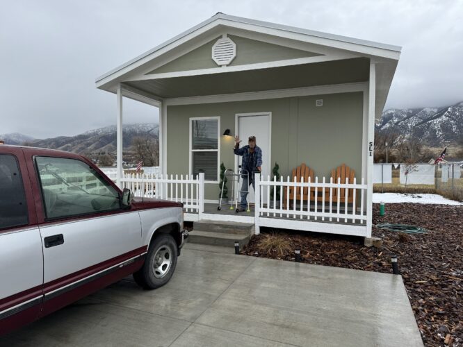 Kelly K., a veteran, waves from the porch of USA Project Valor’s first veteran home built in Cache Valley, Utah.While Utah lawmakers were busy passing bills during the final week of their legislative session earlier this month, a small group gathered in a conference room at the Utah Capitol for a private meeting with Gov. Spencer Cox.