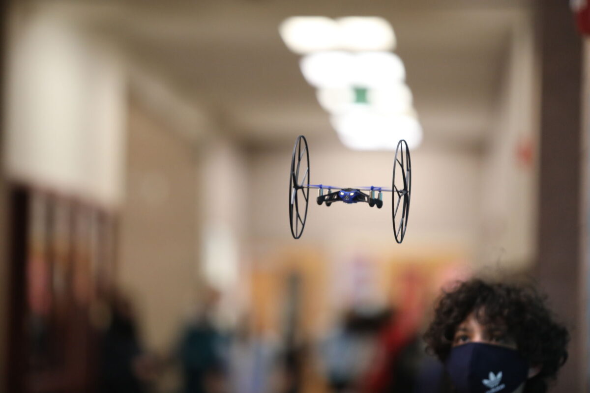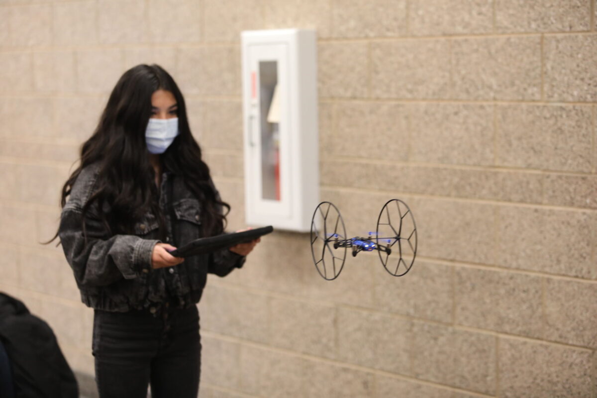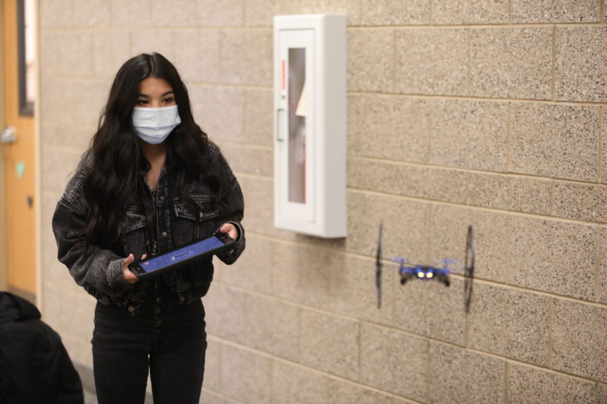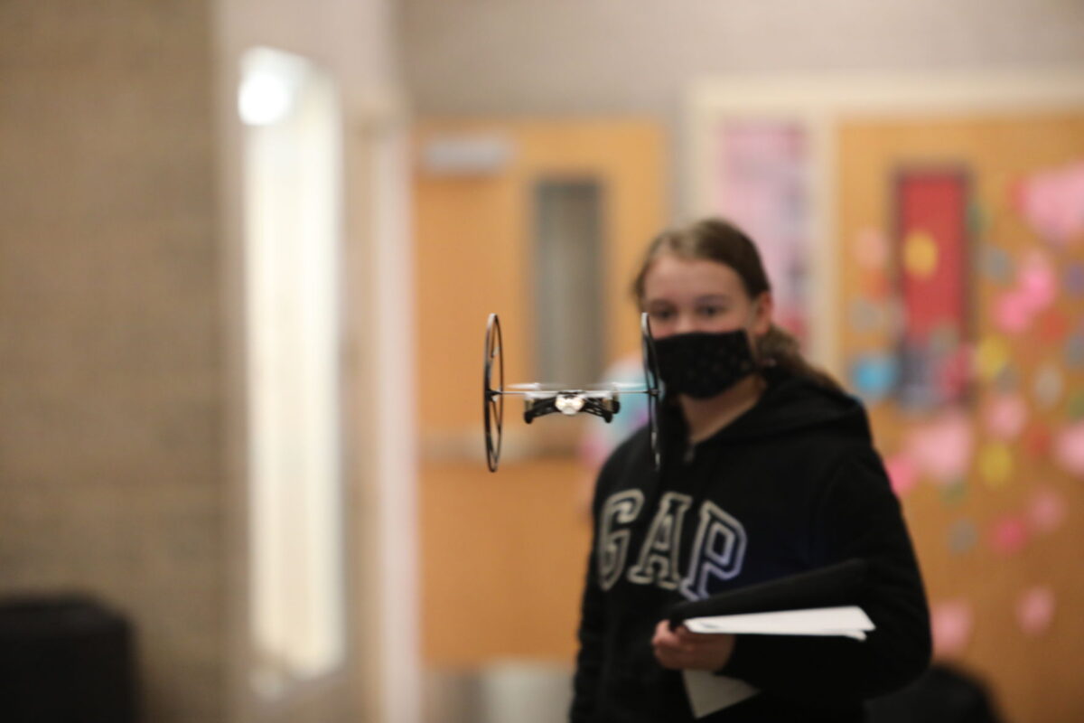 “Be careful, Ms. Jager!” shouted one student, as his drone launched forward. “I don’t want to hit you. Then I’d have to pay for medical bills.”