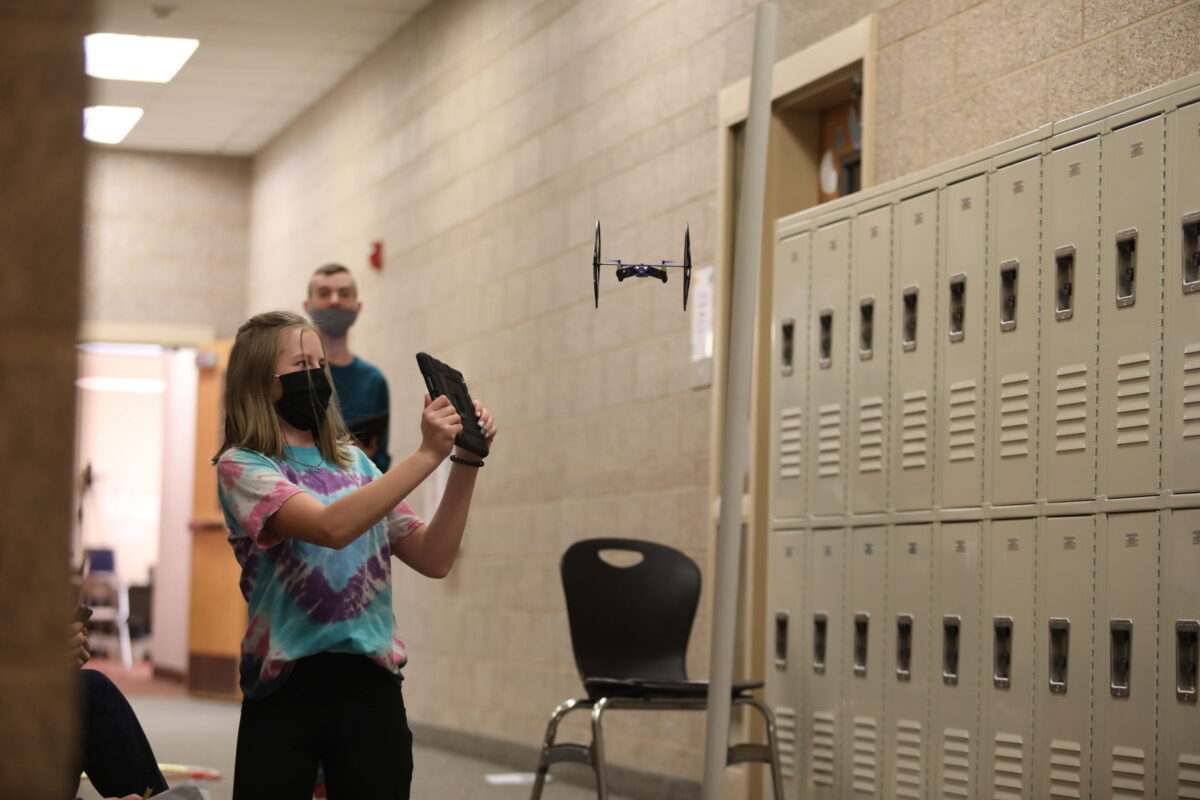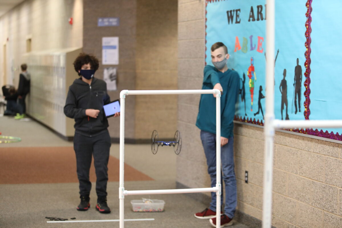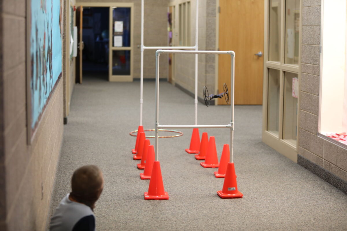 On Wednesday, however, one locker-lined walkway transformed into a makeshift drone obstacle course for the culmination of STARBASE 2.0, a program meant to increase students’ interest in STEM fields. As the small aircrafts weaved around cones and through PVC pipe frames, sometimes smashing into doorjambs and lockers, exuberant seventh graders cheered.