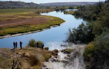Preston, Idaho — Steam rose from a sacred hot spring where it meets the slow-flowing Bear River, even on a warm sunny October afternoon with a hint of sulfur in the air.