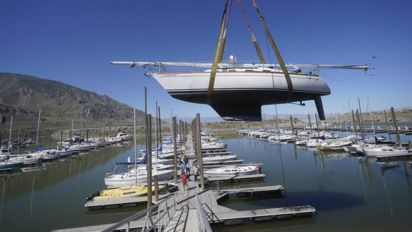 SALT LAKE CITY — A crane lifted boats into their slips at the Great Salt Lake Marina on Tuesday, a sign of the lake’s rebounding thanks to an amazing winter with record-breaking snowpack.