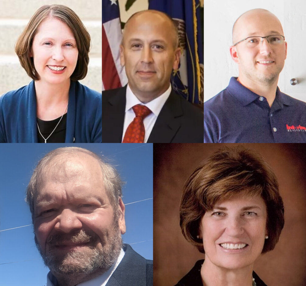 There are five hopefuls to fill the District 13 Utah House seat to be vacated by Rep. Paul Ray. They are, clockwise from top left, Karen Peterson, Erik Craythorne, Jordan Peterson, Beverly Macfarlane and William Swank. A winner is to be selected on Dec. 18, 2021.