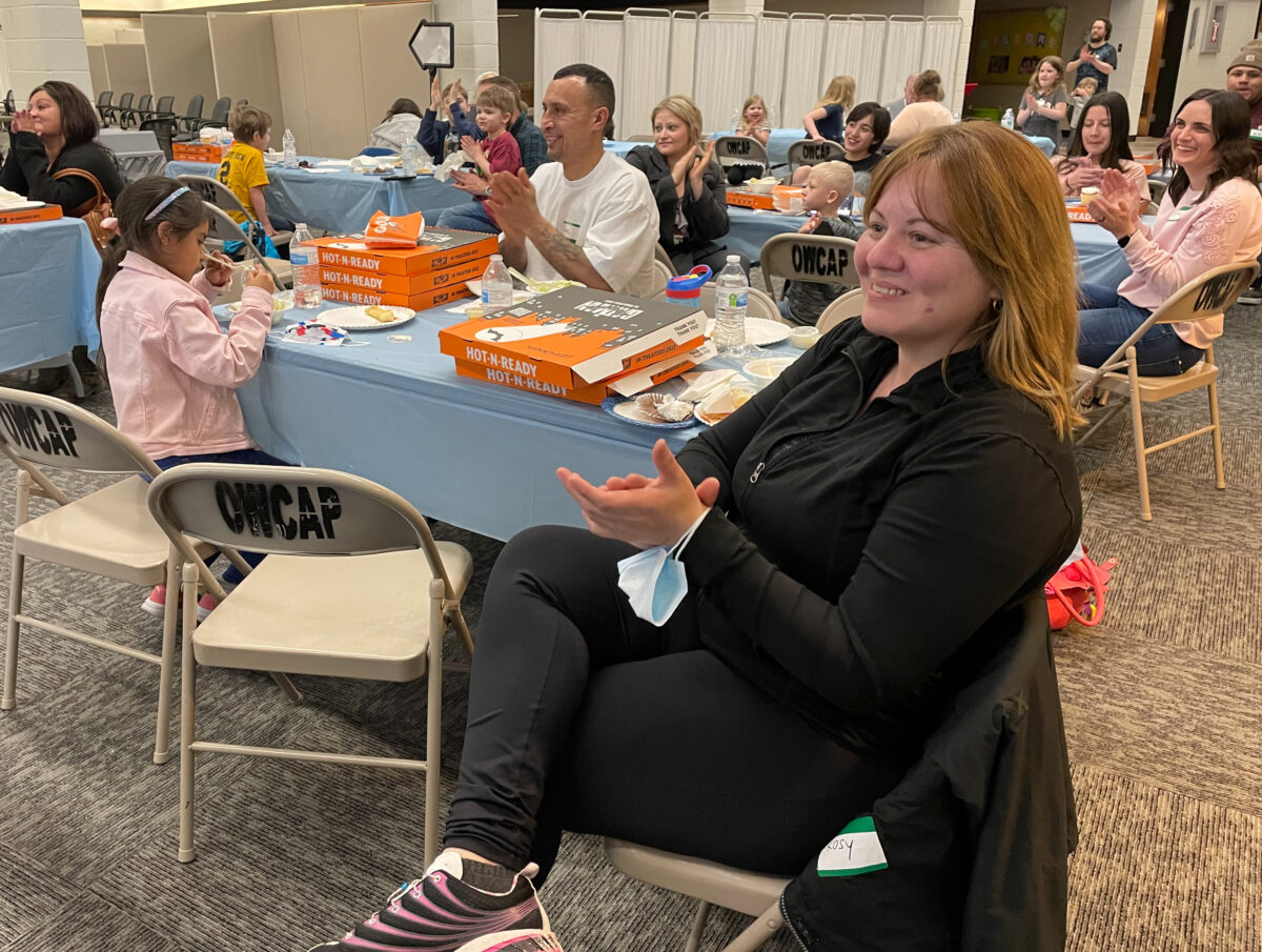 Circles participant Rosa Rodriguez, right, claps at a ceremony Wednesday, March 2, 2022, to mark completion of the first phase of the program by participants. Jose Valdez, across the table from Hernandez in the white shirt, also took part. The ceremony was held at the offices of the Ogden-Weber Community Action Partnership.