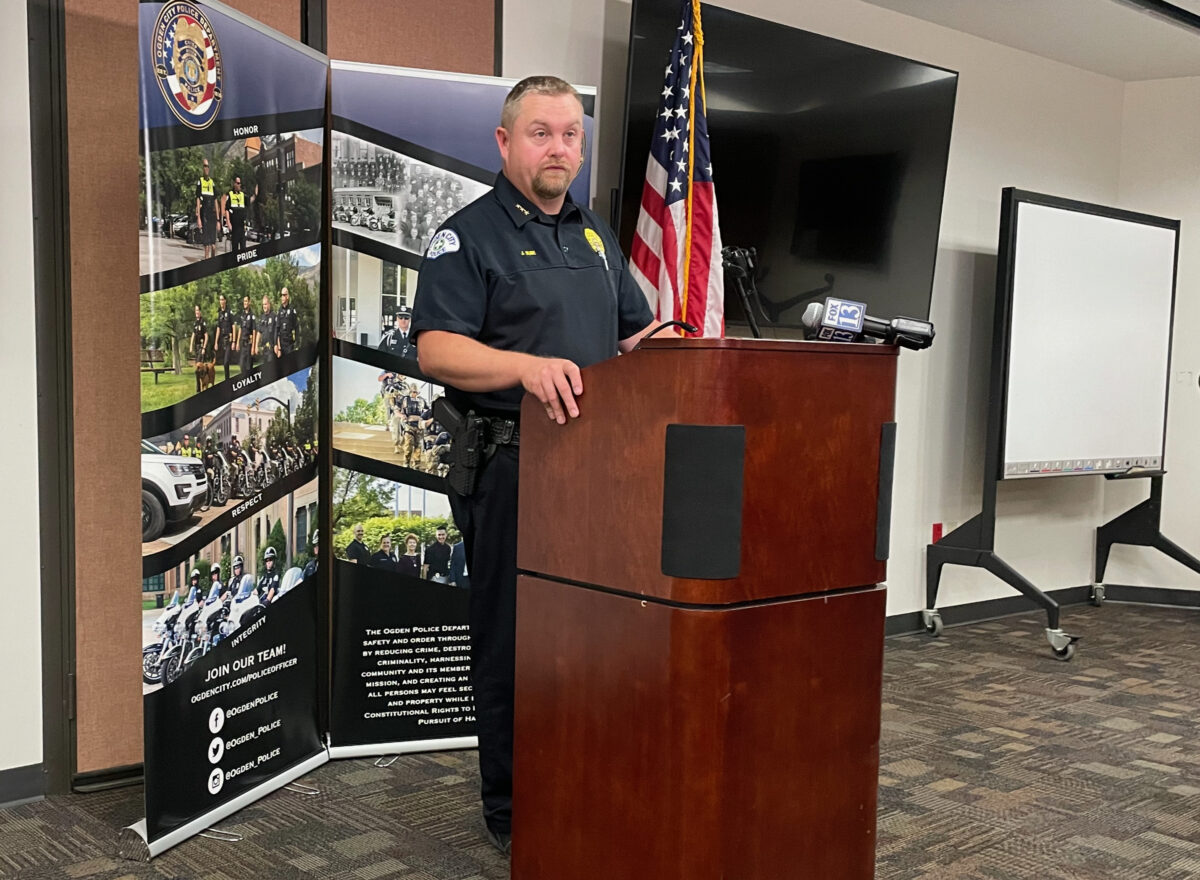 - Jake Sube, deputy chief in the Ogden Police Department, speaks at a press conference on Tuesday, June 6, 2023, about an officer-involved shooting that left an officer injured and a suspect dead.