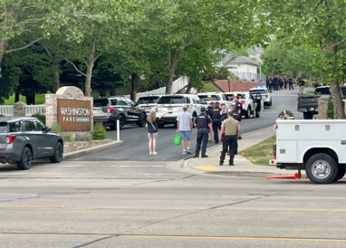As of around 4:20 p.m., the entry to the apartment complex was closed off and numerous marked and unmarked police vehicles with lights flashing lined the east side of Washington Boulevard outside the Washington Park Apartments complex.
