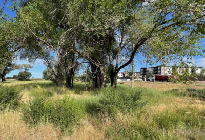 The site of the proposed Railyard Lofts Apartments development proposal off West 20th Street and south of the Lotus Riverwalk development, visible on the right side of the photo. The photo was taken Thursday, June 22, 2023.