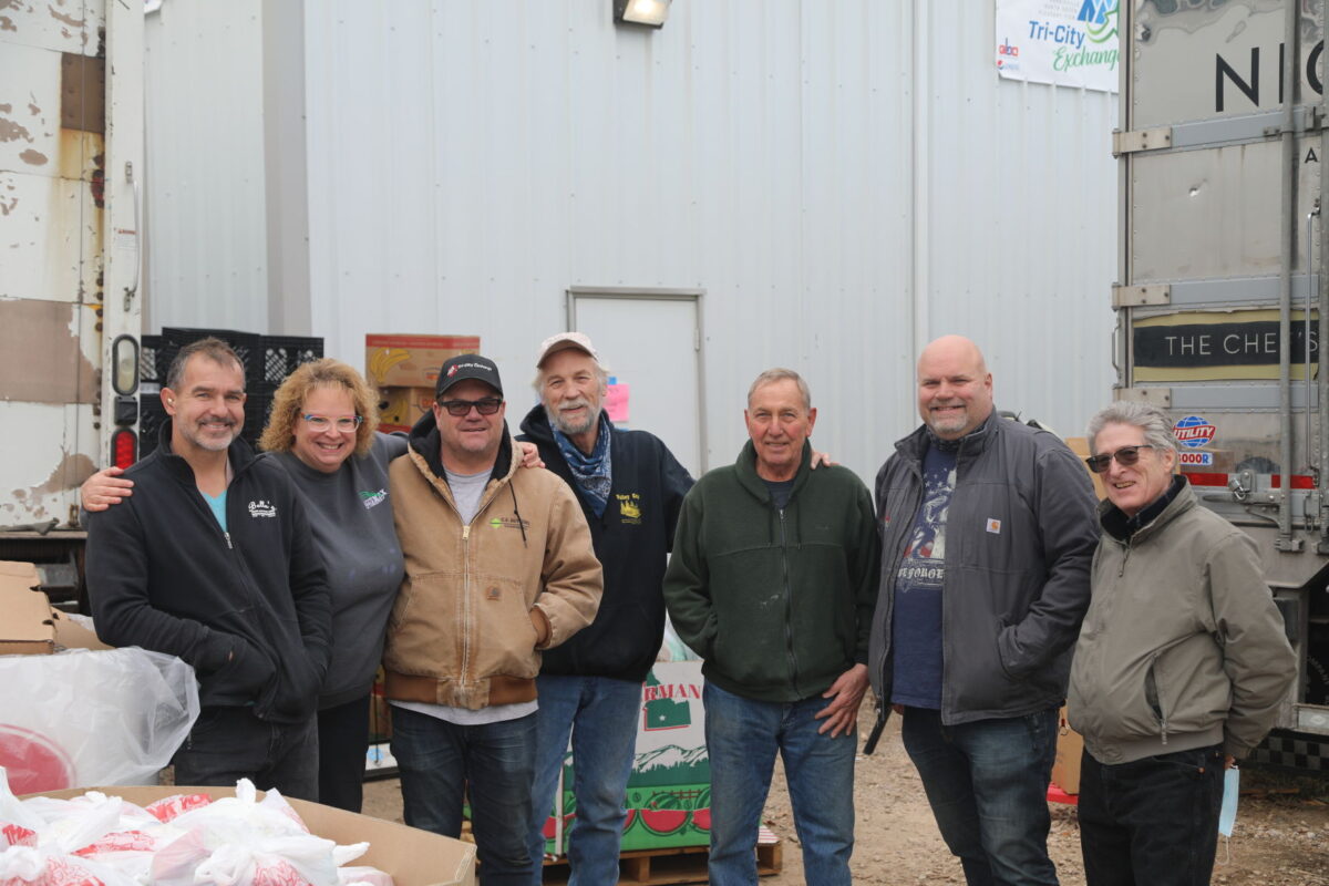 - From left, Joe Cottam, Teresa Larson and Mike Larson pose with volunteers and Chad Anderson, second from right, at Tri-City exchange in North Ogden on Monday, Nov. 23, 2020.